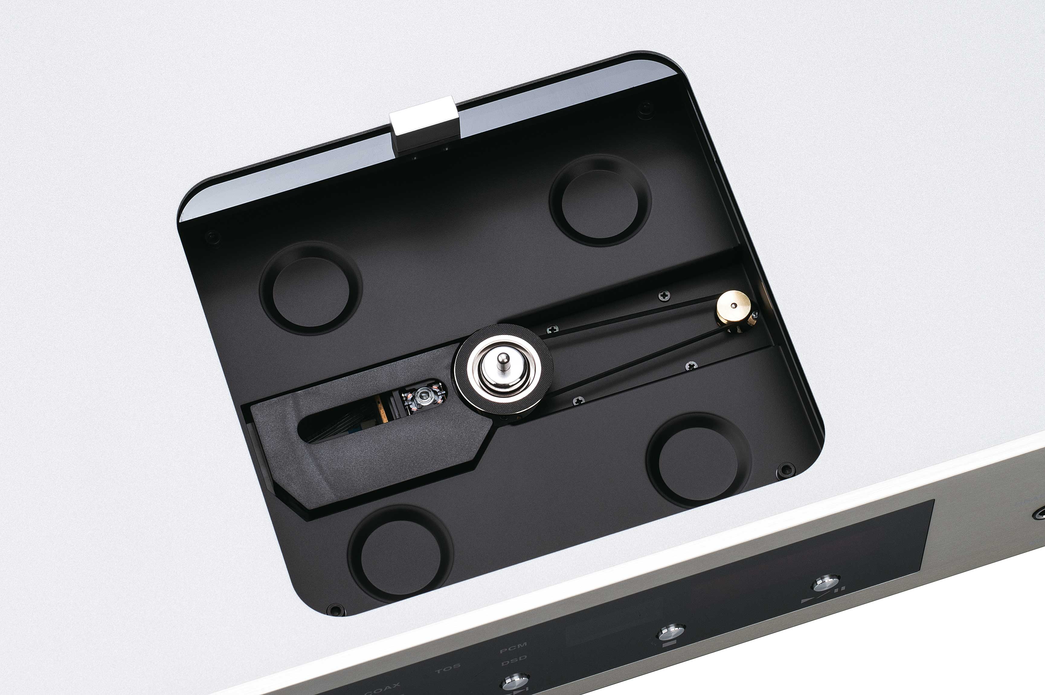 Bei dem riemengetriebenen CD 5 von CEC ist der Spindelmotor von der Mittelspindel getrennt, wodurch Vibrationen und elektromagnetische Störungen minimiert werden. Ein massiver CD-Stabilizer führt zu einer höheren Trägheit des Drehtellers und somit zu einer stabilen und gleichmäßigen Drehung der CDs. Das niedrigere Drehmoment und die größere Entfernung des Motors zur Mittelspindel (Drehteller) liefern die idealen Voraussetzungen für eine perfekte Musikwiedergabe.